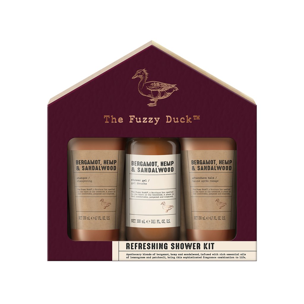 V prémiové kolekci péče pro muže The Fuzzy Duck se snoubí divoká krása přírody s gentlemanskou elegancí a sofistikovaným vzhledem. Rustikální estetika inspirovaná přírodními materiály kombinuje vínové a přírodní tóny s bronzovými prvky a s etiketami v typickém lékárnickém stylu. Vytvořeno s jedinečnou vůní, která spojuje hřejivé konopí s jemnými tóny santalového dřeva a špetkou energizujícího bergamotu.