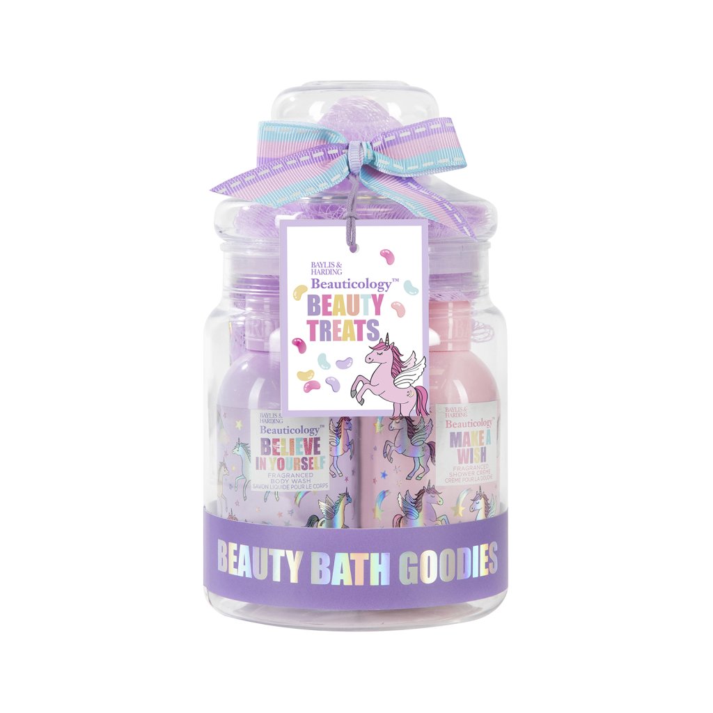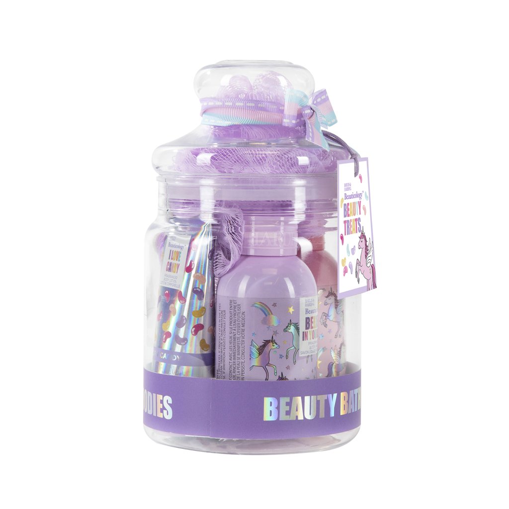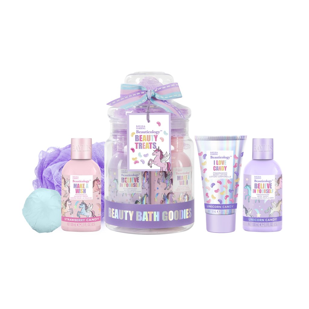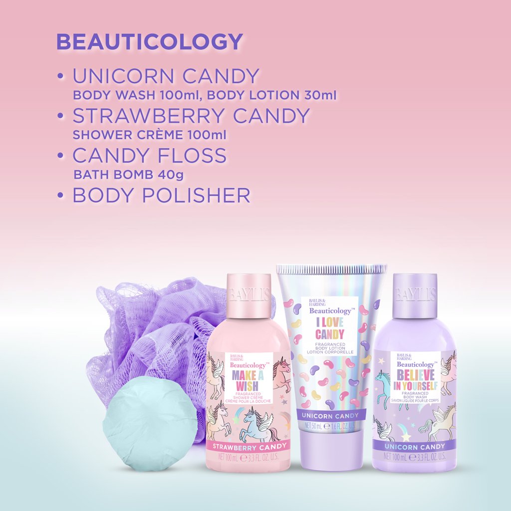 Kolekce Beauticology je hravá, zábavná, kouzelná a barevná. Design s holografickými detaily, pastelovými barvami a magickými motivy tvoří společně s rozmanitými vůněmi cukrovinek perfektní kolekci pro malé či větší milovníky jednorožců, kteří mají chuť na sladké!