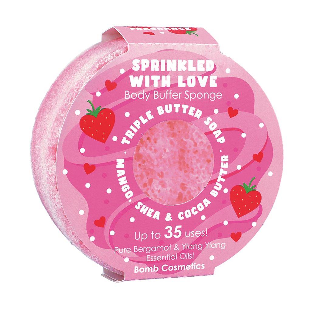 Mýdlová houbička Sprinkled With Love připomíná oblíbený jahodový dezert. Sladká vůně jahod jemně provoní pokožku i celou koupelnu a společně s čistými esenciálními oleji z bergamotu a ylang ylang navodí pocit klidu a pohody. Houbička napuštěná mýdlem s obsahem mangového, bambuckého a kakaového másla, vytváří bohatou krémovou pěnu, která šetrně myje, hýčká a zanechá pokožku sametově hebkou a vyživenou.