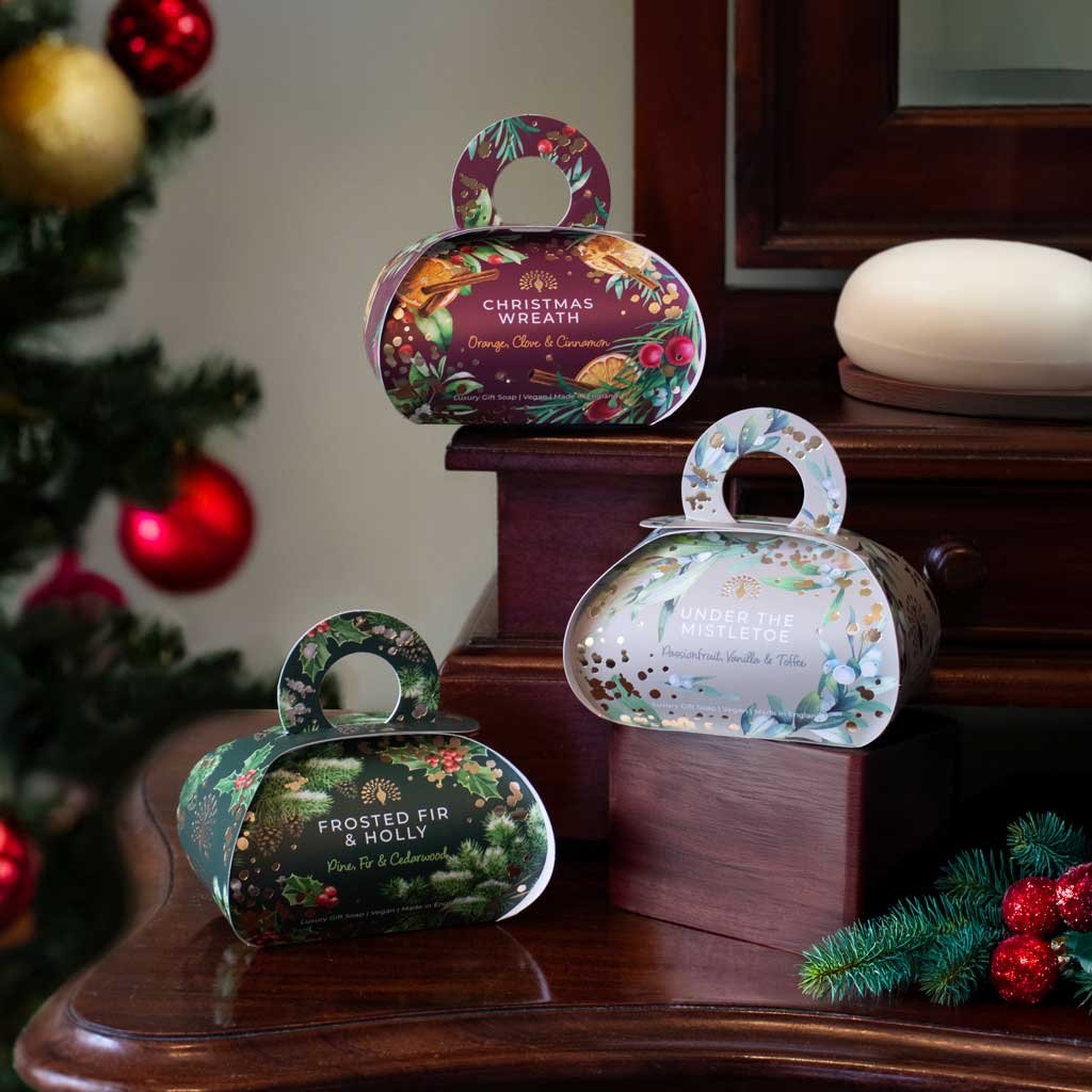 Frosted Fir & Holly Tuhé mýdlo v dárkové krabičce, 260 g
