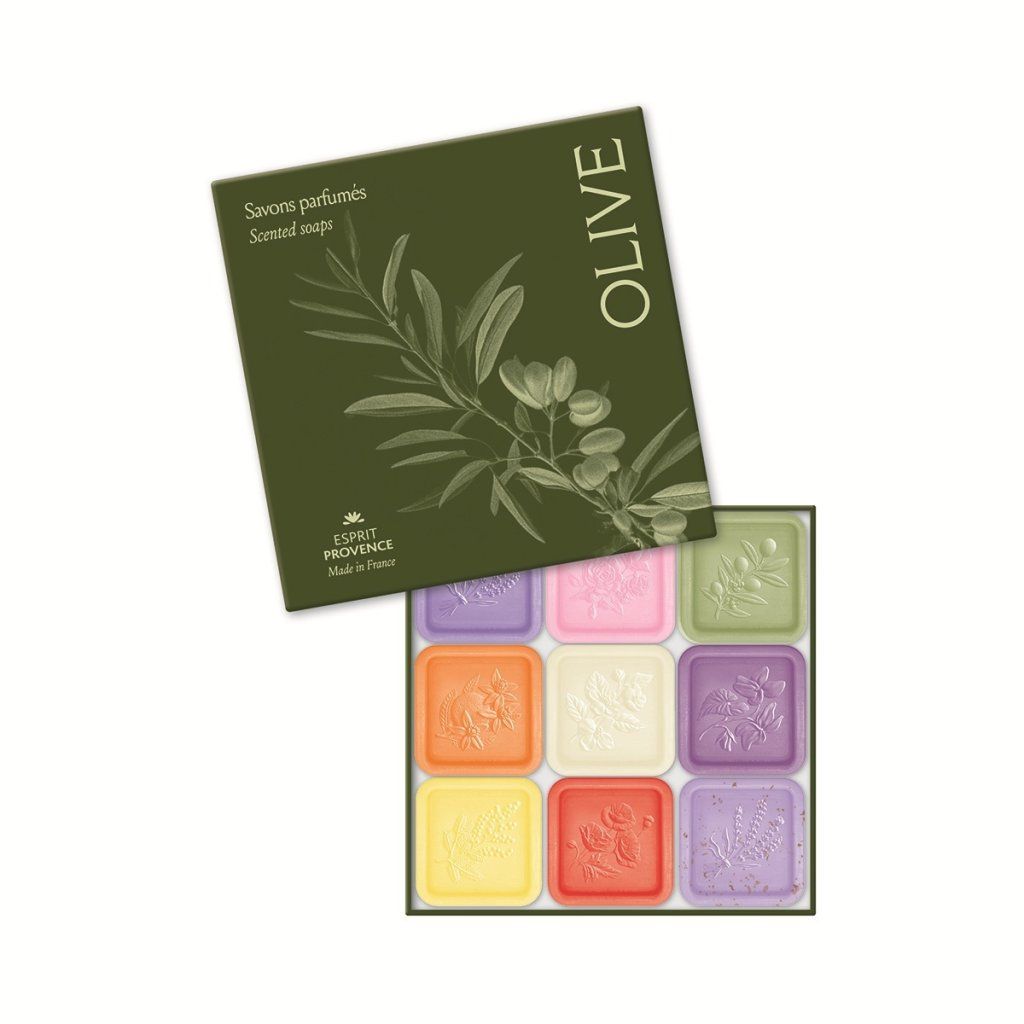 Dárková sada Esprit Provence obsahuje devět přírodních mini mýdel, každé s vůní inspirovanou provensálskou přírodou a obohacené o vyživující olivový a mandlový olej. Společně s bambuckým máslem intenzivně pečují o pokožku, hydratují ji a zanechávají ji hedvábně jemnou při každém mytí. Mýdla jsou ozdobena jemným reliéfem květin, který připomíná krásy Provence. Tato sada představuje ideální způsob, jak si dopřát luxusní péči o pokožku nebo udělat radost někomu blízkému dárkem, který přinese kousek francouzského venkova do vaší koupelny.