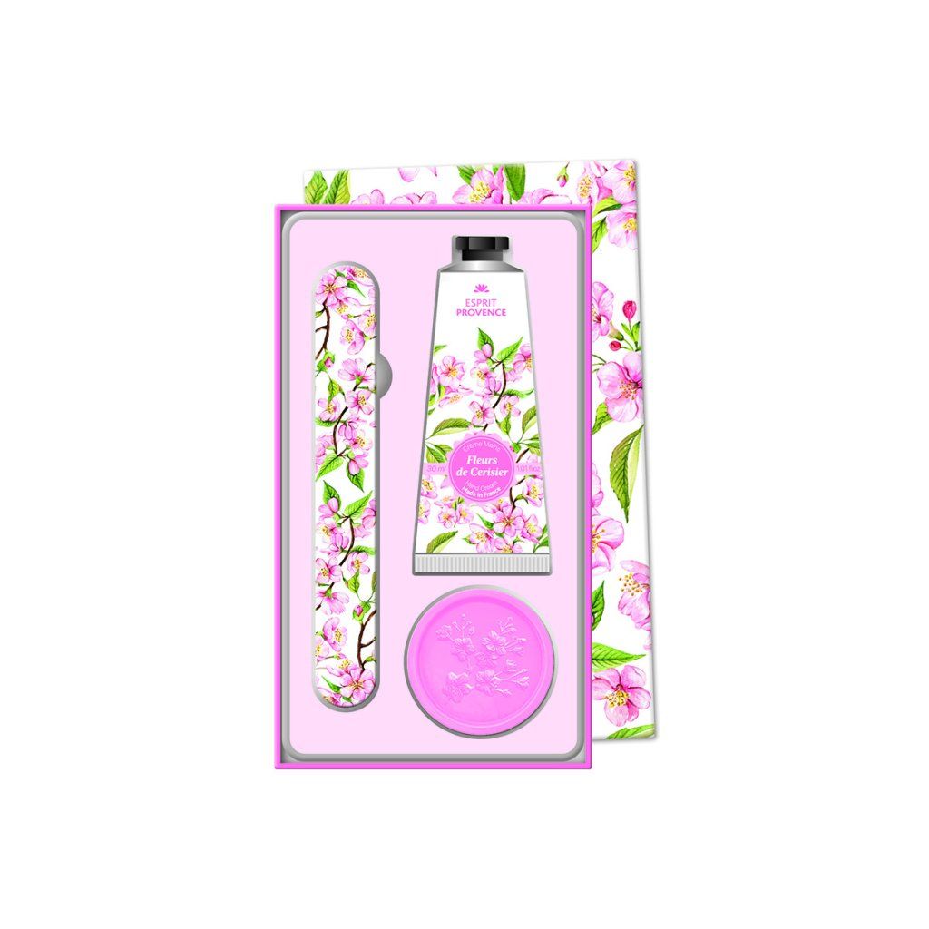 Elegantní dárková sada péče o ruce od značky Esprit Provence s jemnou vůní třešňových květů představuje ideální tip na dárek i praktického společníka pro každodenní péči o ruce. Sada obsahuje vše potřebné pro čisté, hydratované a upravené ruce – krém na ruce, tuhé mýdlo a pilník na nehty v kompaktním provedení vhodném i na cesty.