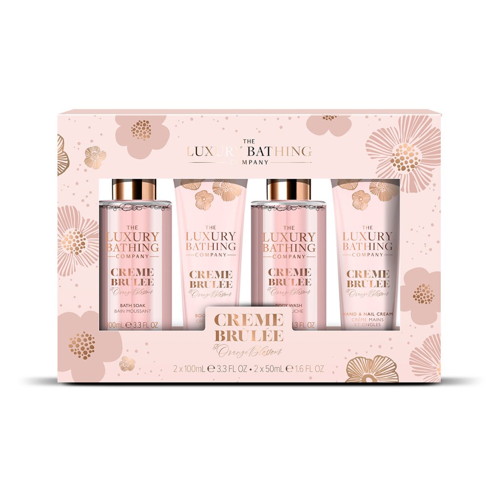 Crème Brûlée & Orange Blossom - sada s péčí o tělo, 4 ks pečující kosmetika pro celé tělo s vůní sladké vanilky, creme brulee a pomerančového květu