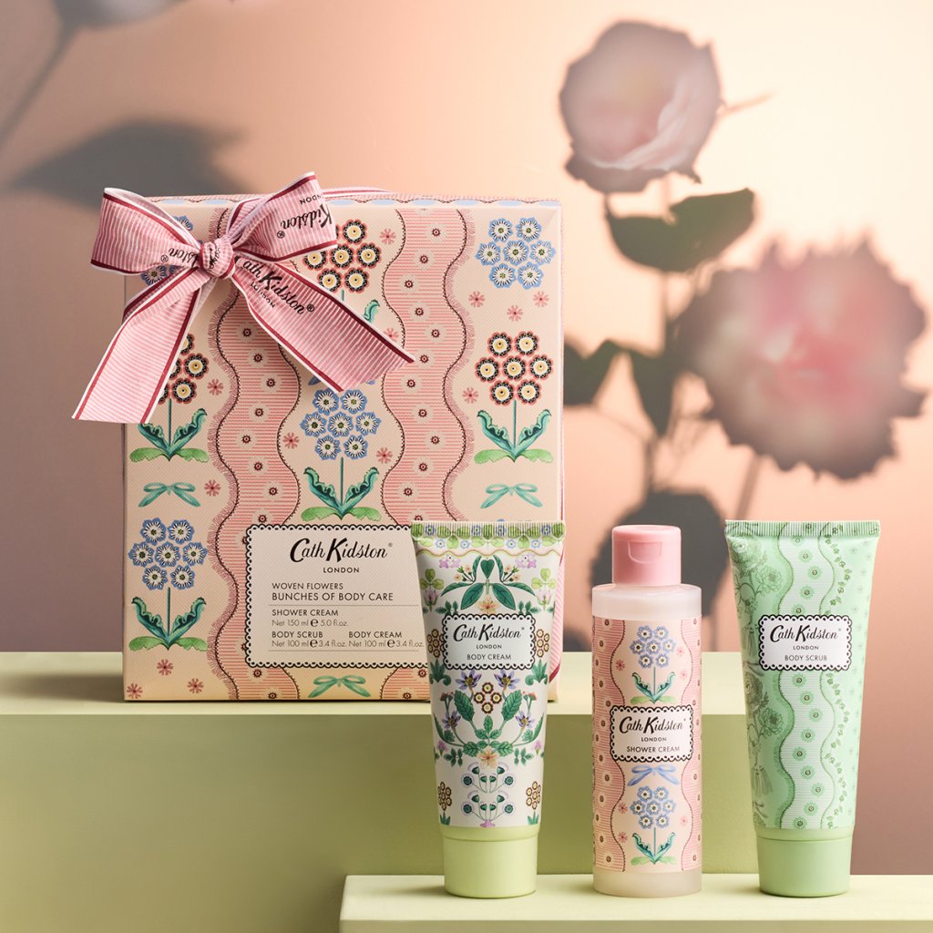 Objevte krásně zabalený dárkový set Woven Flowers od Cath Kidston, který promění každodenní koupel v malý pečující rituál. Elegantní krabička převázaná mašlí a zdobená jemnými květinovými ilustracemi z kolekce Woven Flowers z něj dělá ideální dárek pro chvíle relaxace.