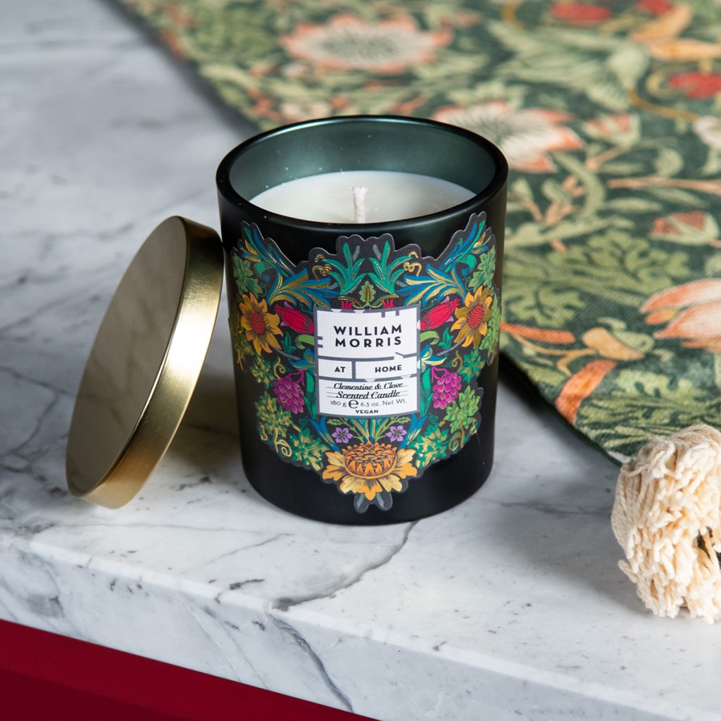 Provoňte domov sváteční atmosférou s dekorativní svíčkou v designu Williama Morrise. Sladká mandarinka, hřejivý hřebíček a špetka skořice rozzáří interiér tradiční vánoční vůní, která přináší pocit útulna a radosti. Skleněná dóza s víčkem a uměleckým motivem Sunflower Swan krásně ozdobí krbovou římsu i sváteční stůl. Po dohoření ji jednoduše znovu použijte jako dózu na drobnosti či malou vázičku.