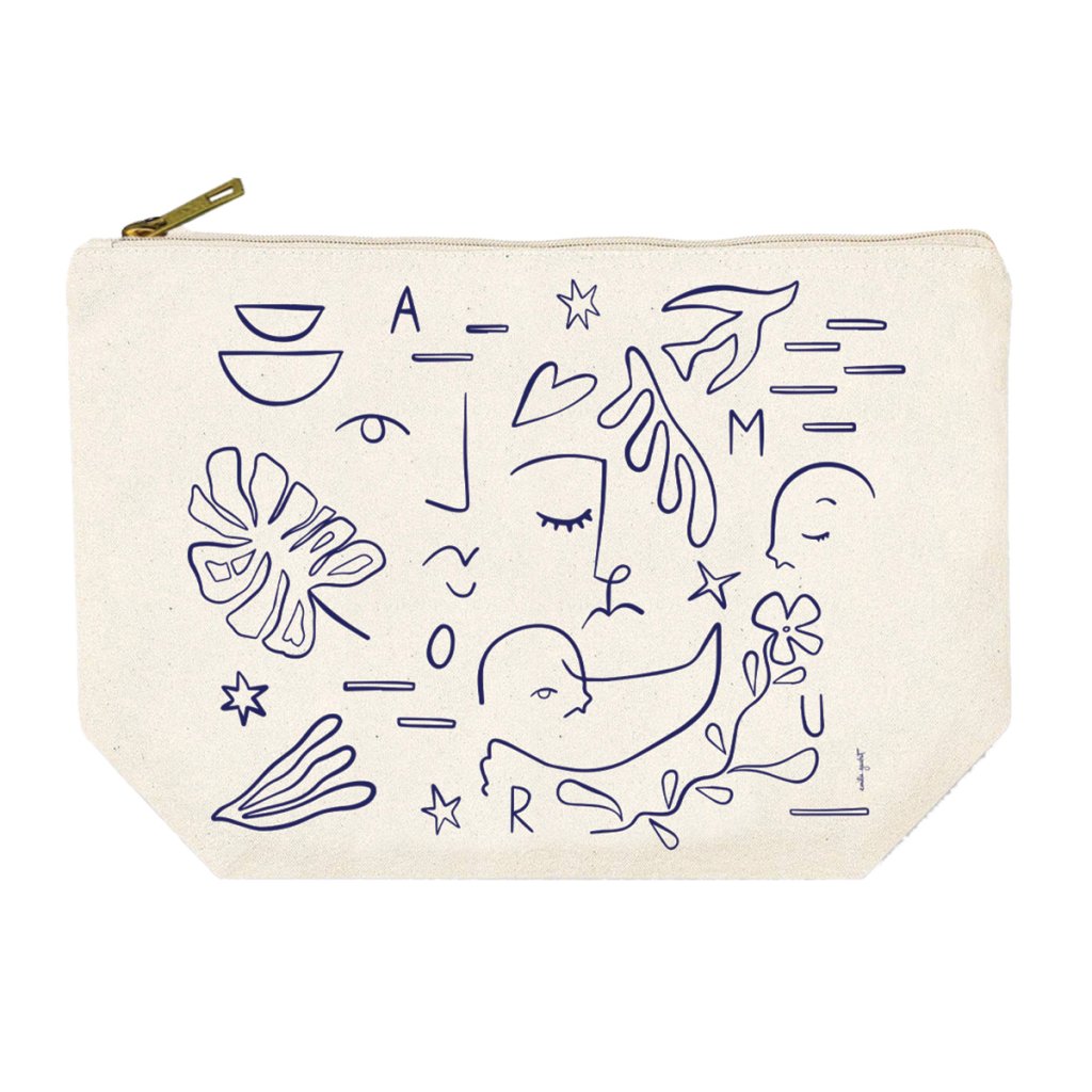 Velká bavlněná kosmetická taštička s minimalistickou ilustrací a motivem „Amour“ je praktickým a zároveň designovým doplňkem pro každodenní použití. Autorská kresba Emilie Gauvrit v jemném lineárním stylu působí čistě, moderně a nadčasově.
