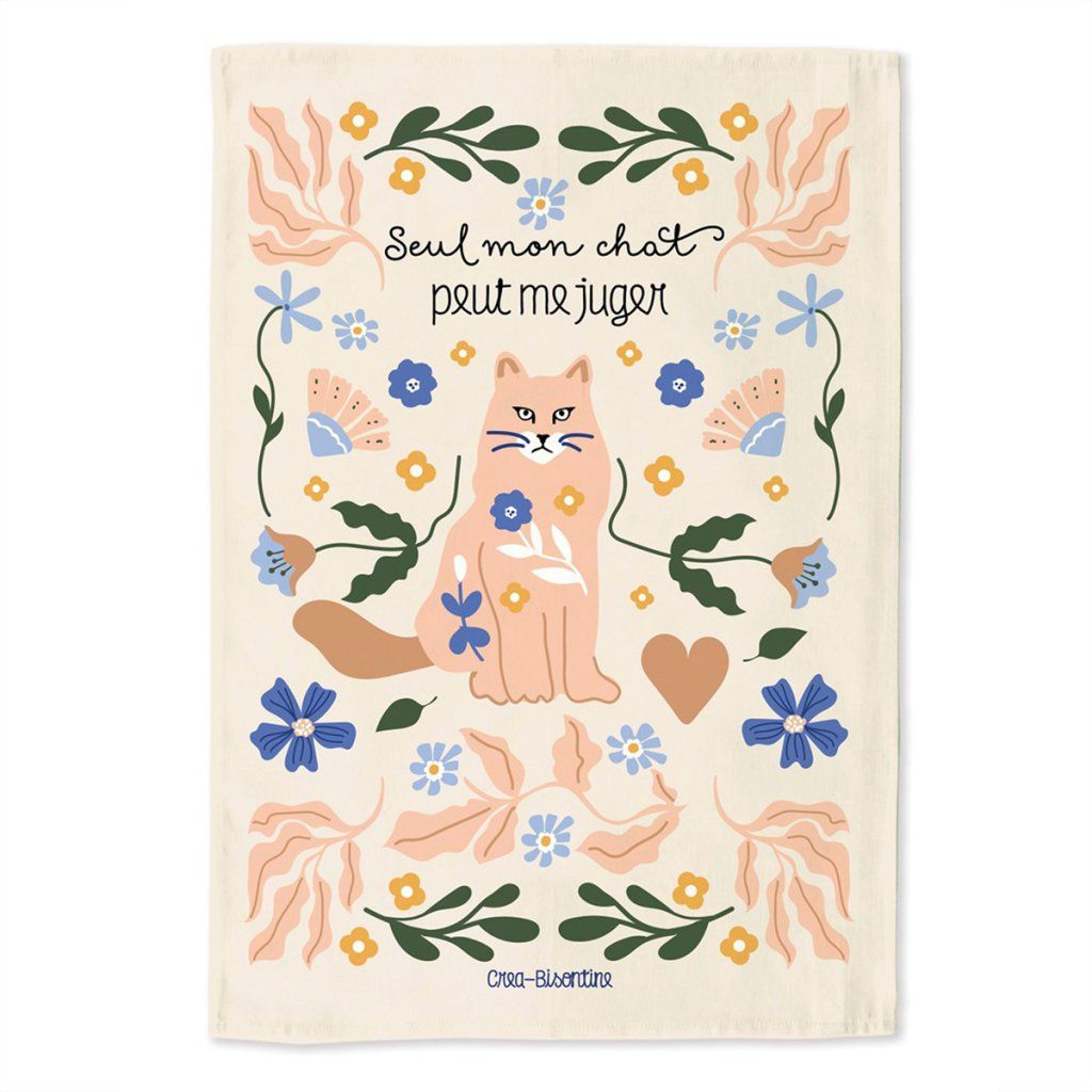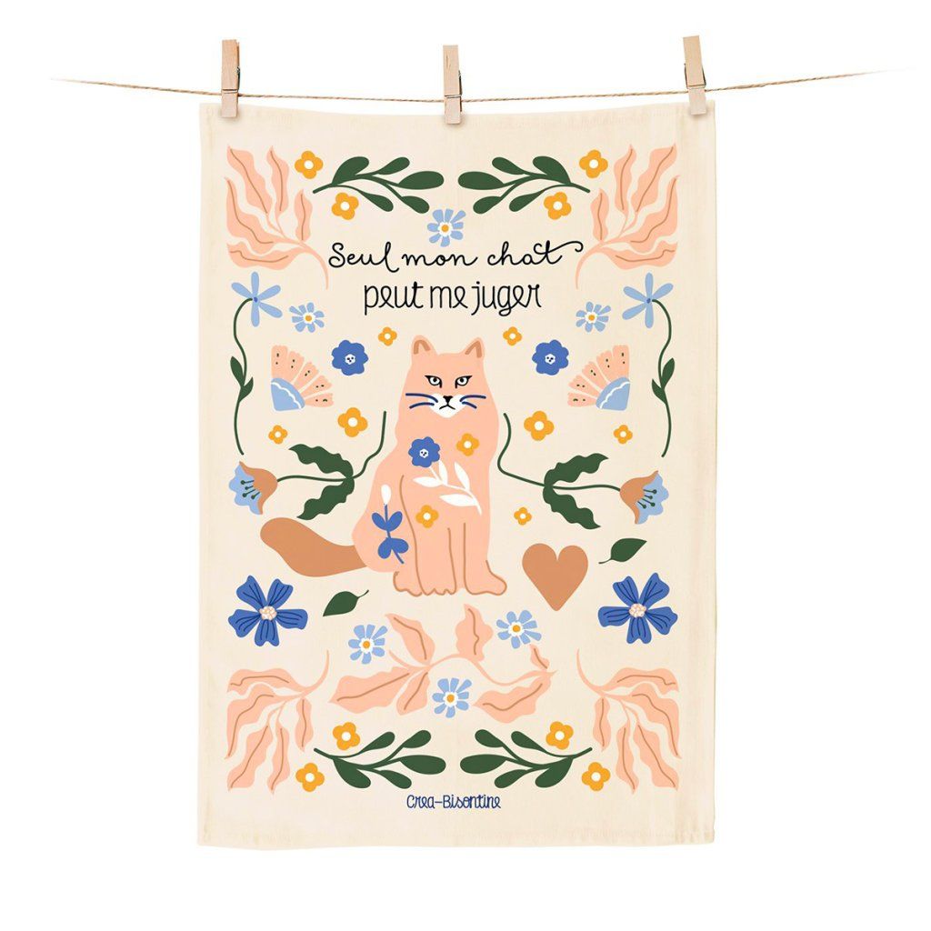 Nápis „Seul mon chat peut me juger“, tedy "Jen moje kočka mě může soudit" potěší všechny milovníky koček a udělá z běžné utěrky výrazný doplněk do moderní kuchyně. A pokud se v kuchyni něco nepovede, víte, že jediný, kdo vás může hodnotit, je vaše kočka!