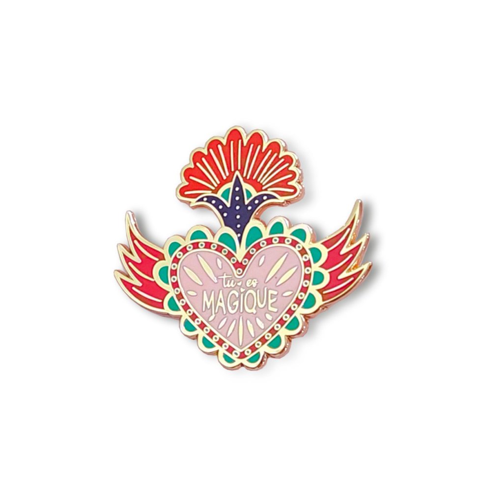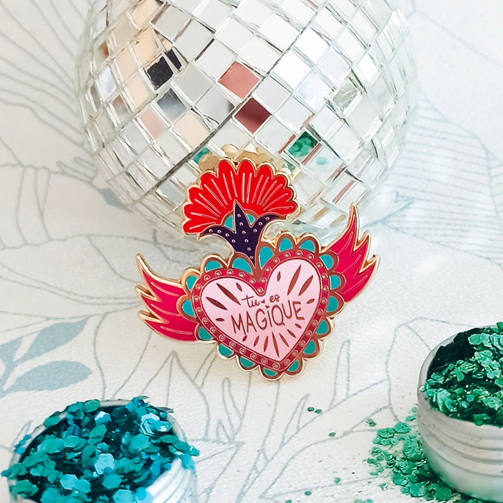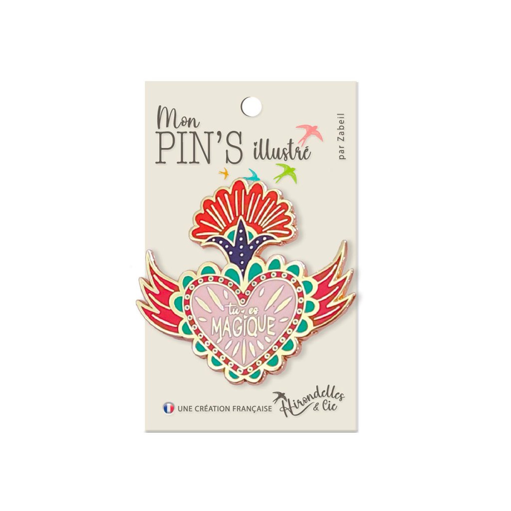 Někdy stačí jediný detail, aby vám připomněl, jak výjimečná jste. Kovový pin Tu es magique z autorské kolekce ilustrátorky Zabeil je malým, ale výrazným symbolem radosti, sebevědomí a barevné fantazie. Srdce s křídly a nápisem „Tu es magique“ („Jsi kouzelná“) působí jako osobní talisman, který dodá energii každému dni.