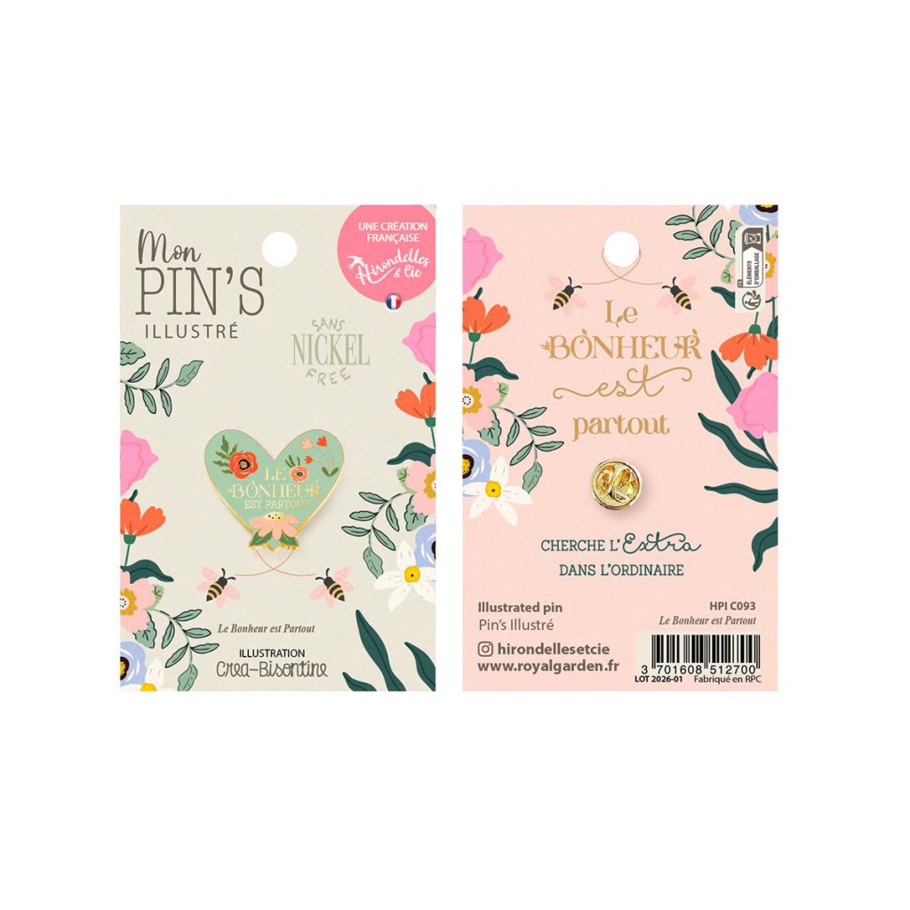 Šperk, který nám každý den připomíná, že štěstí se skrývá v obyčejných okamžicích, je prostě nepostradatelný. Tento kovový pin ve tvaru srdce z kolekce Le Bonheur est Partout od značky Hirondelles & Cie je něžným symbolem radosti, lásky a optimismu.