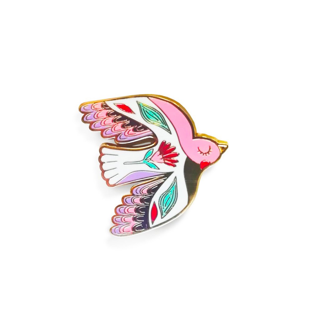 Stylový odznáček s motivem vlaštovky z dílny francouzské ilustrátorky Zabeil okouzlí hravým stylem a výraznou barevností, která je pro její tvorbu typická.