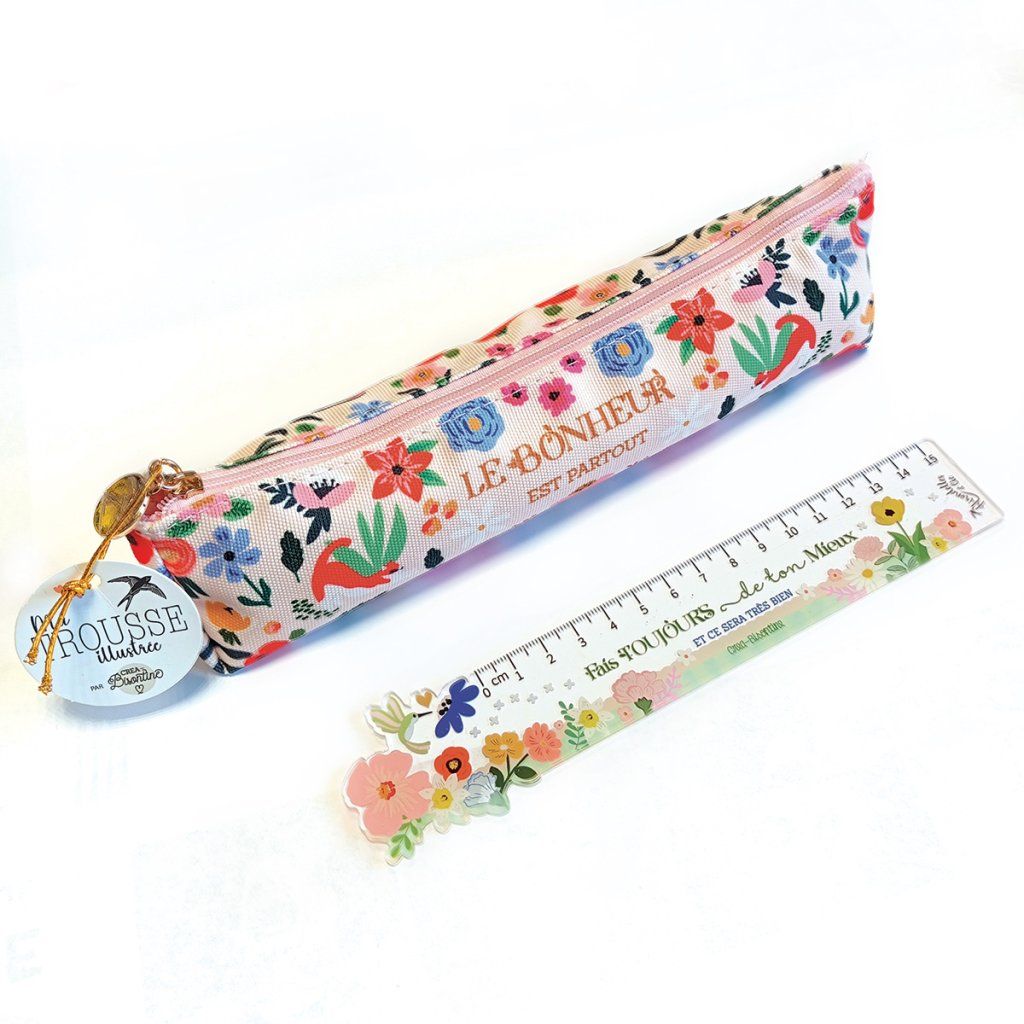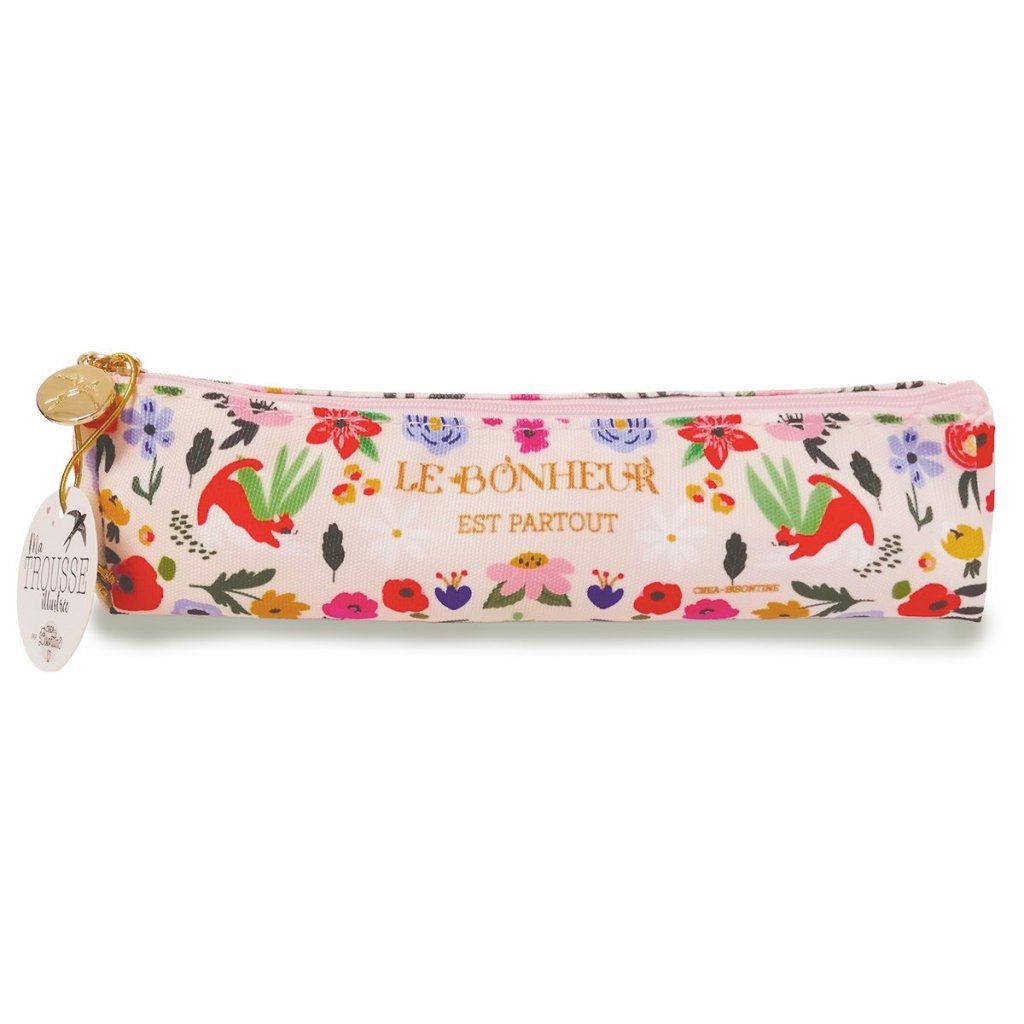 Penál od francouzské značky Hirondelles & Cie zaujme na první pohled autorskou ilustrací Créy Bisontine a jemným zlatým nápisem "Štěstí je všude". Právě tento detail proměňuje obyčejný penál v osobní doplněk s myšlenkou. Každé otevření je tak malou připomínkou toho, že radost se skrývá v každodenních maličkostech.