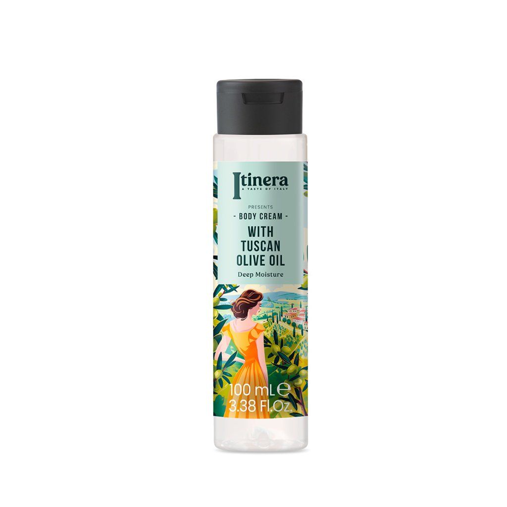 Tělový krém italské značky Itinera nabízí intenzivní 48hodinovou hydrataci díky toskánskému olivovému oleji, který pokožku vyživuje do hloubky a reguluje její přirozenou hydrataci. Složení s 96 % přírodních složek kombinuje výjimečné vlastnosti bambuckého másla, sladkého mandlového oleje a glycerinu, které společně vytvářejí ochranný hydratační film, podporují pružnost pokožky a zklidňují zarudnutí či podráždění. Lehká textura krému se rychle vstřebává, zanechává pokožku sametově hebkou, hydratovanou a provoněnou jemnými tóny květin, zelených lístků, ovoce a dřeva. Je ideální i pro citlivou pokožku.