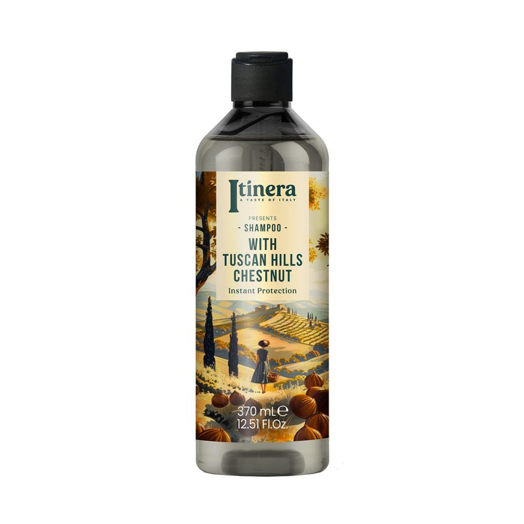 Objevte šetrnou péči s šamponem Itinera speciálně navrženým pro ochranu vlasů před tepelným poškozením při stylingu. Obsahuje organický extrakt z toskánských kaštanů, bohatý na sacharidy, minerály, vitamíny, bílkoviny a aminokyseliny, včetně argininu, který vlasy posiluje, hydratuje a vytváří ochranný film zabraňující ztrátě vlhkosti. Inovativní složení pomáhá restrukturalizovat vlasové vlákno, zlepšuje jeho pevnost a pružnost a dodává vlasům zdravý lesk. Vůně ovocných tónů, vanilky, pryskyřic a mošusu vás zahalí do hřejivého, podzimního aroma inspirovaného toskánskými lesy.