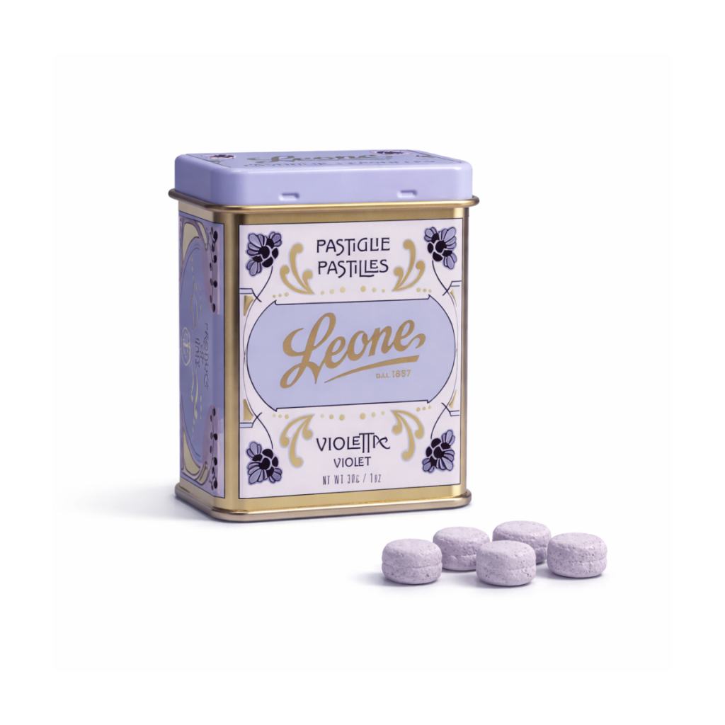 Fialkové pastilky Leone zaujmou jemnou květinovou chutí s typickým aroma fialek. Jejich lehce sladký charakter nabízí příjemnou změnu oproti klasickým ovocným příchutím. Stylová plechová dóza působí pěkně na pohled a hodí se i jako malý dárek.