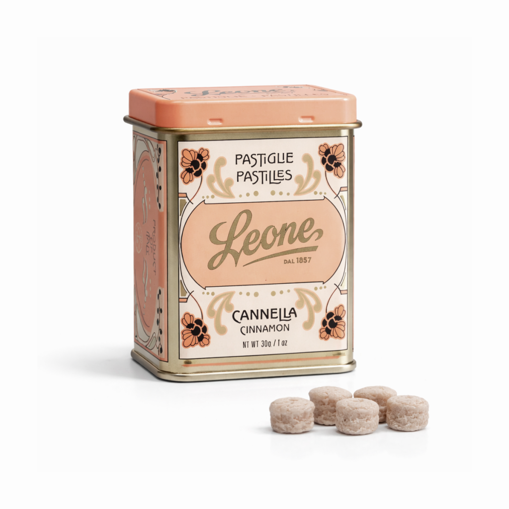 Skořicové pastilky Leone zaujmou kořeněnou chutí s příjemně sladkým nádechem. Výrazné aroma skořice dělá z pastilek zajímavou alternativu ke klasickým ovocným příchutím. Elegantní plechová dóza se navíc hodí jako malý dárek.
