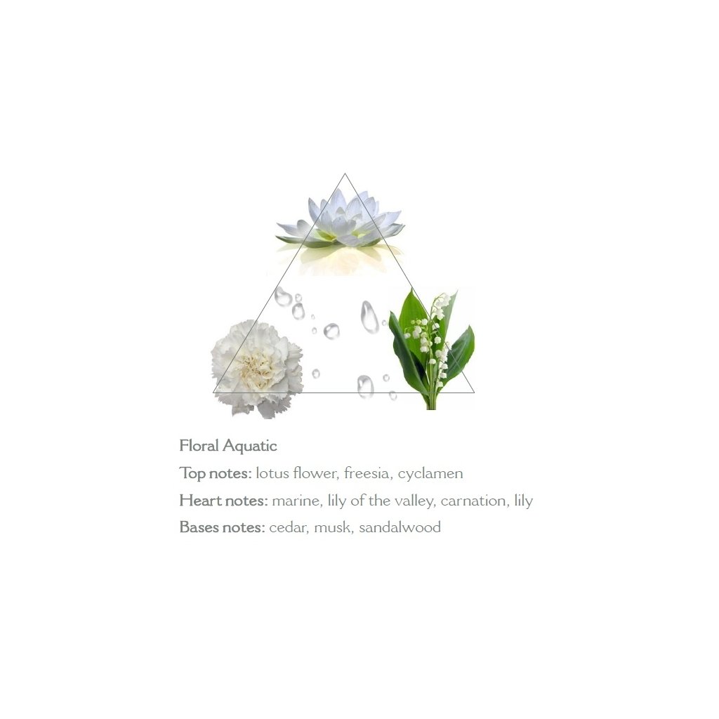 Vneste do své domácnosti osvěžující vůni mořské ranní mlhy a nádechem mošusu, frézie. Tato jedinečná kombinace protkaná slunečními paprsky a přímořskou svěžestí vykouzlí jedinečný okamžik kterýkoliv všední den a povznášející vůně pohladí vaše smysly jako sametové vlny.