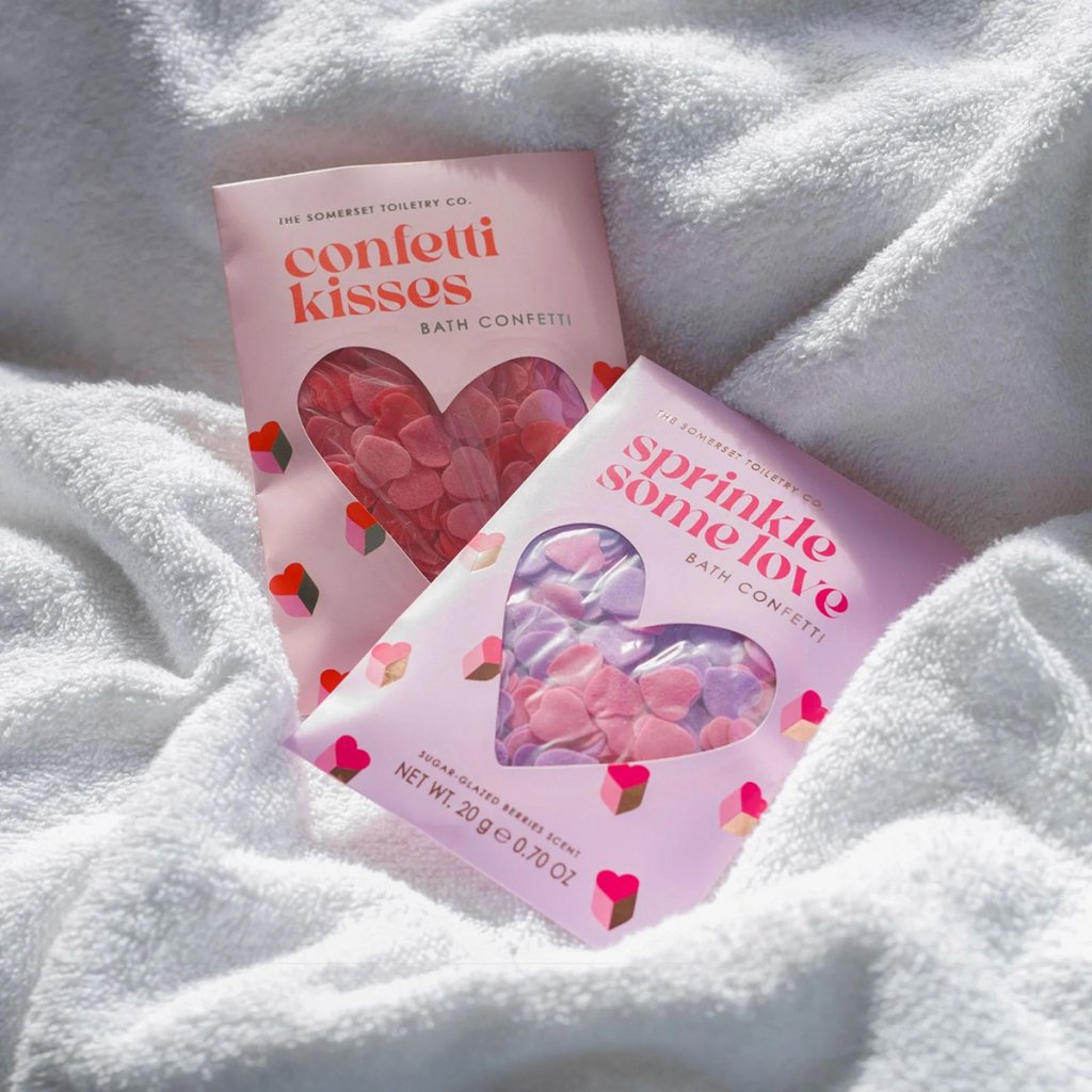 Konfety do koupele Confetti Kisses jsou krásným doplňkem k dárkovým sadám kosmetiky, potěší jako drobnost pro kamarádku, partnera i jako milá pozornost pro sebe. Vytvořte si doma vlastní spa, napusťte vanu, zasypte ji růžovými srdíčky a užijte si chvíle dokonalé relaxace.