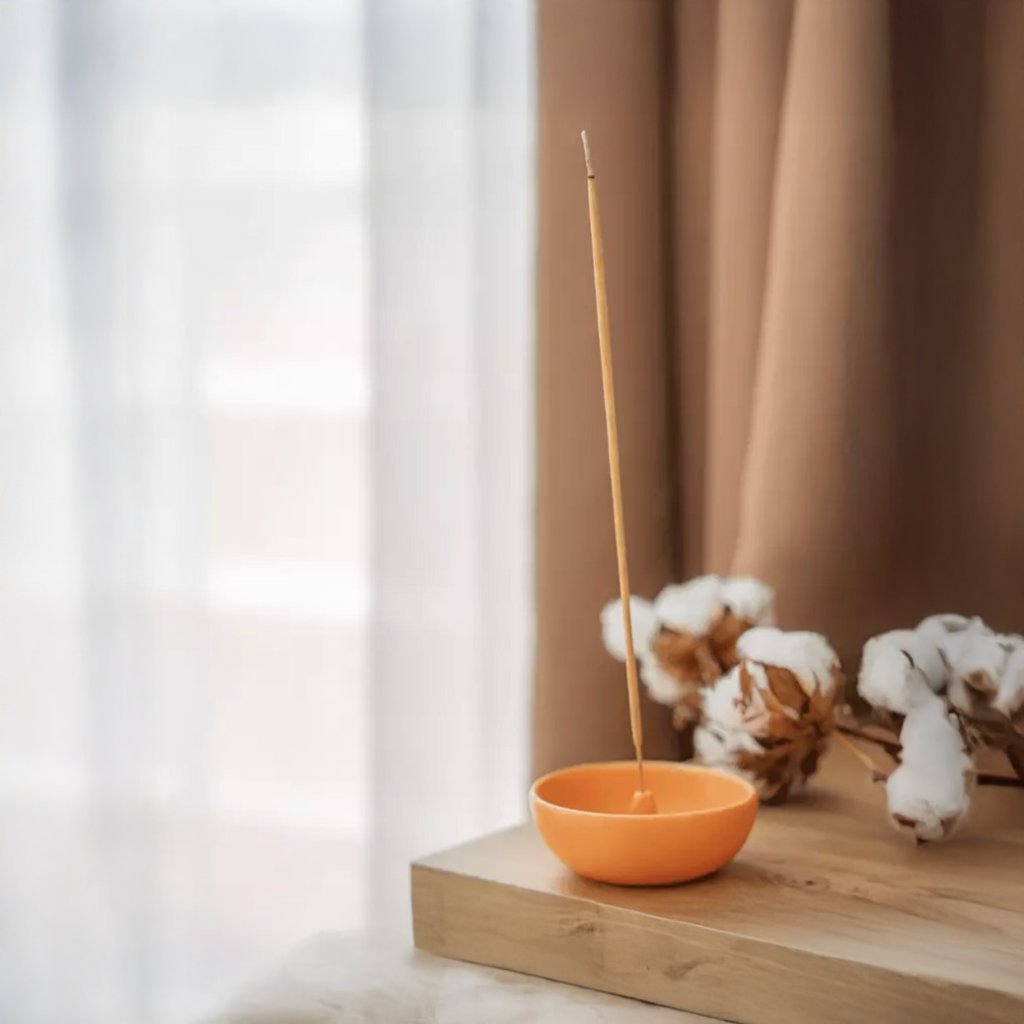 Zapalte špičku vonné tyčinky, nechte ji krátce hořet a poté jemně sfoukněte plamen. Umístěte tyčinku do vhodného stojánku na bezpečné nehořlavé místo.