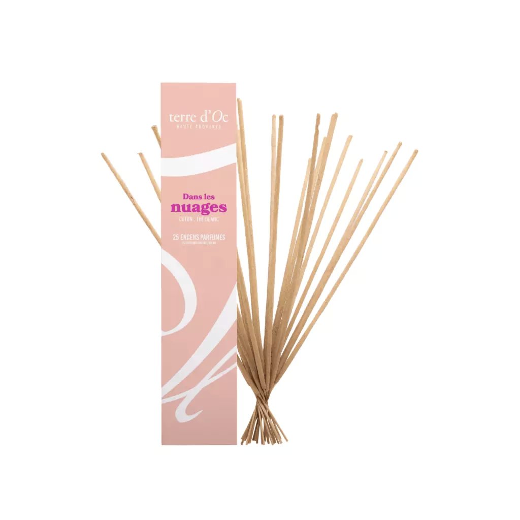 Vonné tyčinky Dans les nuages vás zahalí do jemného obláčku vůně, kde se lehké tóny čaje a sametové meruňky prolínají s hebkým akordem bavlny. Kompozice působí vzdušně a konejšivě – jako chvíle ticha, kdy se díváte na oblohu a necháváte myšlenky volně plynout. Květinové srdce dodává vůni něžnost, zatímco hřejivé dřevité tóny se stopou vanilky a pižma vytvářejí pocit bezpečí a útulnosti.