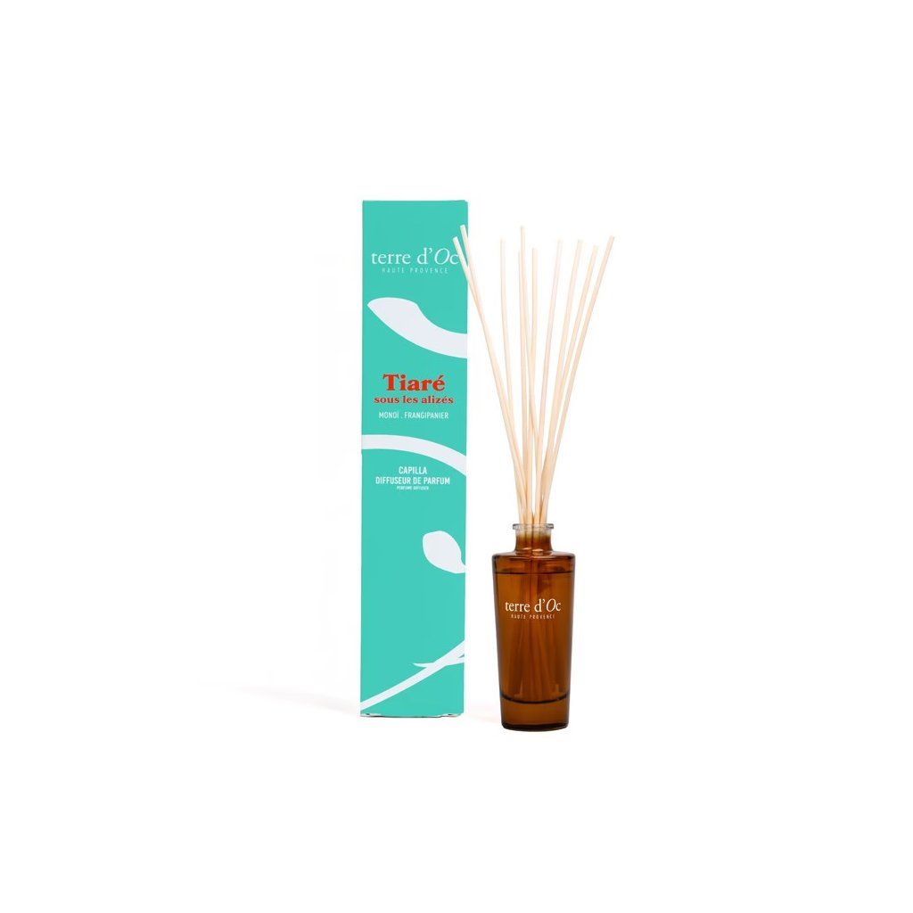 Proměňte svůj domov v tropickou oázu s aroma difuzérem Tiaré sous les alizés. Elegantní flakon s ratanovými tyčinkami provoní interiér exotickou, hřejivou kompozicí inspirovanou vůní monoi a teplým mořským vzduchem.
